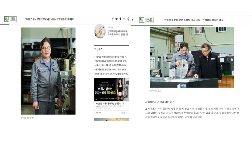 한백정밀 홍승환대표, 핸드메이커 인터뷰 기사 게재 안내